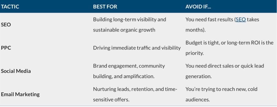 When to Use SEO, PPC, Social, and Email (And When Not To)